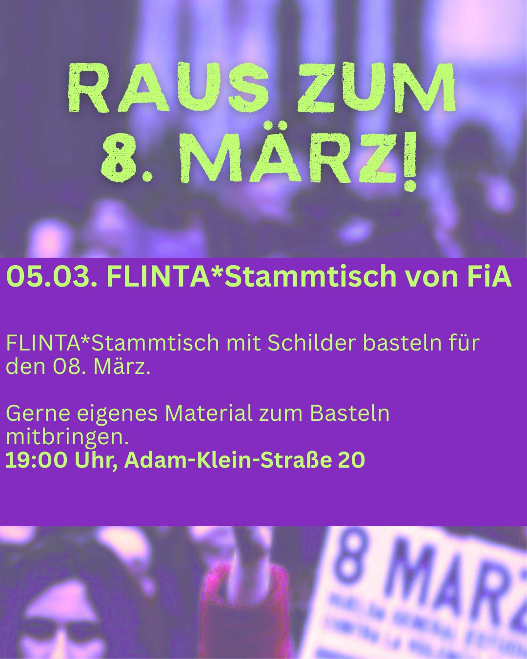 FLINTA*-Stammtisch mit Schilder-Basteln für den 8. März.
