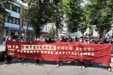 Damit aus der ENTEIGNUNG etwas Positives entsteht, damit Enteignung ein wirklich linkes, emanzipatorisches Konzept wird, muss noch ein wichtige Forderung dazu kommen – und das ist die VERGESELLSCHAFTUNG. Denn wenn wir die enteigneten Wohnungen, Kliniken oder Konzerne einfach dem jetzigen real-existierenden kapitalistischen Staat überlassen, ist wenig gewonnen. Im Gegenteil: Der Staat führt ja seine eigenen Unternehmen und Dienstleistungen immer mehr wie ein stinknormaler Kapitalist. Ebenso wenig wollen wir ein angebliches Volkseigentum, das aber nur auf dem Papier steht, während die Arbeit unter einer alles beherrschenden Bürokratie genauso entfremdet bleibt wie zuvor.