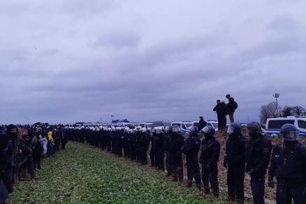 Viele Tausend Aktivist*innen haben sich auch von Polizeiketten und Polizeigewalt nicht aufhalten lassen. Nur durch den Einsatz von Wasserwerfern, Schlagstöcken und Pfefferspray konnte die Polizei verhindern, dass auch der letzte Zaun um den Ort überwunden werden konnte.