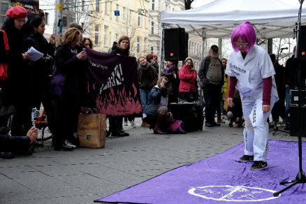 Wir fordern eine bedarfsgerechte Finanzierung und Umstrukturierung der Gesundheitsversorgung, ausgerichtet an den tatsächlichen Bedürfnissen und der Selbstbestimmtheit von Patient*innen und Beschäftigten. Außerdem fordern wir ein generelles Profitverbot für das Gesundheitssystem sowie einen Zugang zur Gesundheitsversorgung für alle Menschen! Wir treten für Verbesserungen in der bezahlten und unbezahlten Sorgearbeit ein. Gesundheit darf keine Ware sein, Kranke kein Mittel der Gewinnmaximierung. Pflegekräfte dürfen kein Kostenfaktor und Pflege kein Grund für Altersarmut sein, Angehörige oder Freund*innen sowie Entrechtete und Illegalisierte nicht Lückenbüßer*innen eines maroden Systems. Wir fordern Selbstbestimmung und Bedarfsorientierung in der Pflege- und Sorgearbeit - Für eine feministische Pflege, die uns alle angeht!