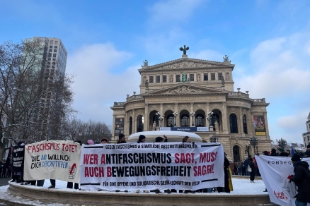 [translated from: https://www.transnational-strike.info/2024/01/20/anti-fascists-everywhere-freedom-of-movement-nowhere/ - We publish the text that comrades from Interventionistische Linke Franfkurt are distributing today at the demonstration called in their city after the journal CORRECTIV published an inquiry about a meeting of the far right-wing party Alternative für Deutschland headquarters together with members of the Center-right party where a plan to deport two millions migrants was discussed. The news has spread a wave of protests across Germany, with tens of thousands people storming to the streets against racism and right-wing violence in many cities.]