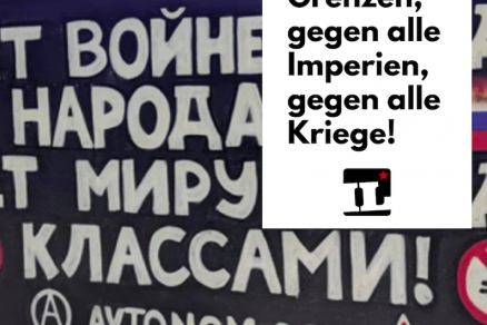 Krieg ist ein Verbrechen gegen die Menschlichkeit, ein Verbrechen gegen die Menschheit. Es braucht eine klare, unversöhnliche Haltung des Friedens, die sich auf keine falsche Seite stellt. Es braucht eine bedingungslose und unkomplizierte Aufnahme fliehender Menschen und das Ermöglichen sicherer Fluchtrouten. Macht die Grenzen auf! Für das Ende der Kriege zwischen Nationen und Imperien. Abrüstung und Entmilitarisierung statt Rüstungexporte und Kriegsrhetorik. Den Herrschenden in den Rücken fallen! Jede militärische Handlung und jeder Waffennachschub, der von hier aus den Krieg befeuert und nicht behindert und sabotiert wird, trägt direkt bei zu Tod und Leid tausender Menschen.