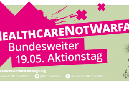 Währenddessen laufen die Geschäfte mit dem Tod ganz ausgezeichnet. Die Auftragsbücher des Rheinmetall-Konzerns quellen über. Er prognostiziert den Beginn eines „Super-Zyklus“ der globalen Rüstungsindustrie und sieht sich selbst mittendrin. 103 Mio. EUR werden im Mai an die Anteilseigner*innen des Konzerns als Dividende ausgeschüttet. Sie muss abgeschöpft und ins Gesundheitssystem umgeleitet werden! Die Jahreshauptversammlung wird dieses Mal ausschließlich virtuell stattfinden. Die gesetzliche Grundlage, die Ende März geschaffen wurde, war Teil der sog. Corona-Rettungspakete und ermöglicht es dem Konzern Protest auszusperren, Kritik im wahrsten Sinne des Wortes stumm zu stellen.