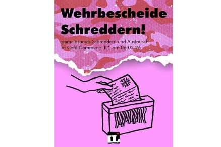 Im Rahmen unseres monatlichen Café Commune wollen wir gemeinsam Wehrbescheide schreddern.