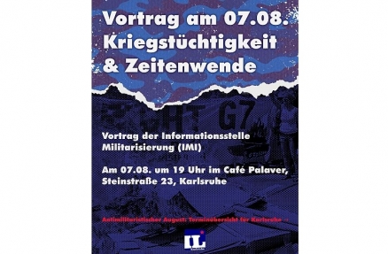 Karlsruhe: Vortrag der Informationsstelle Militarisierung (IMI) am 07.08.2025