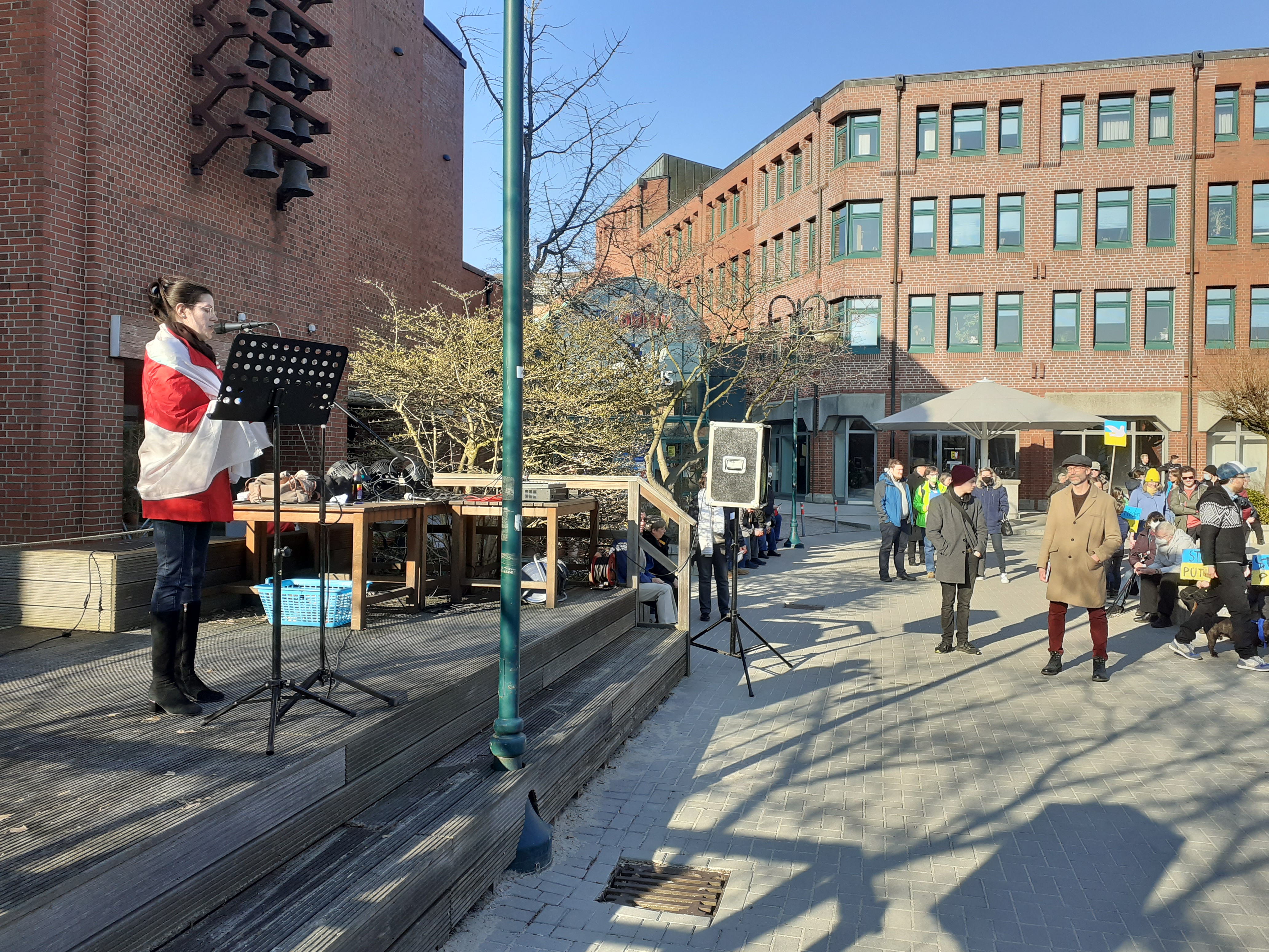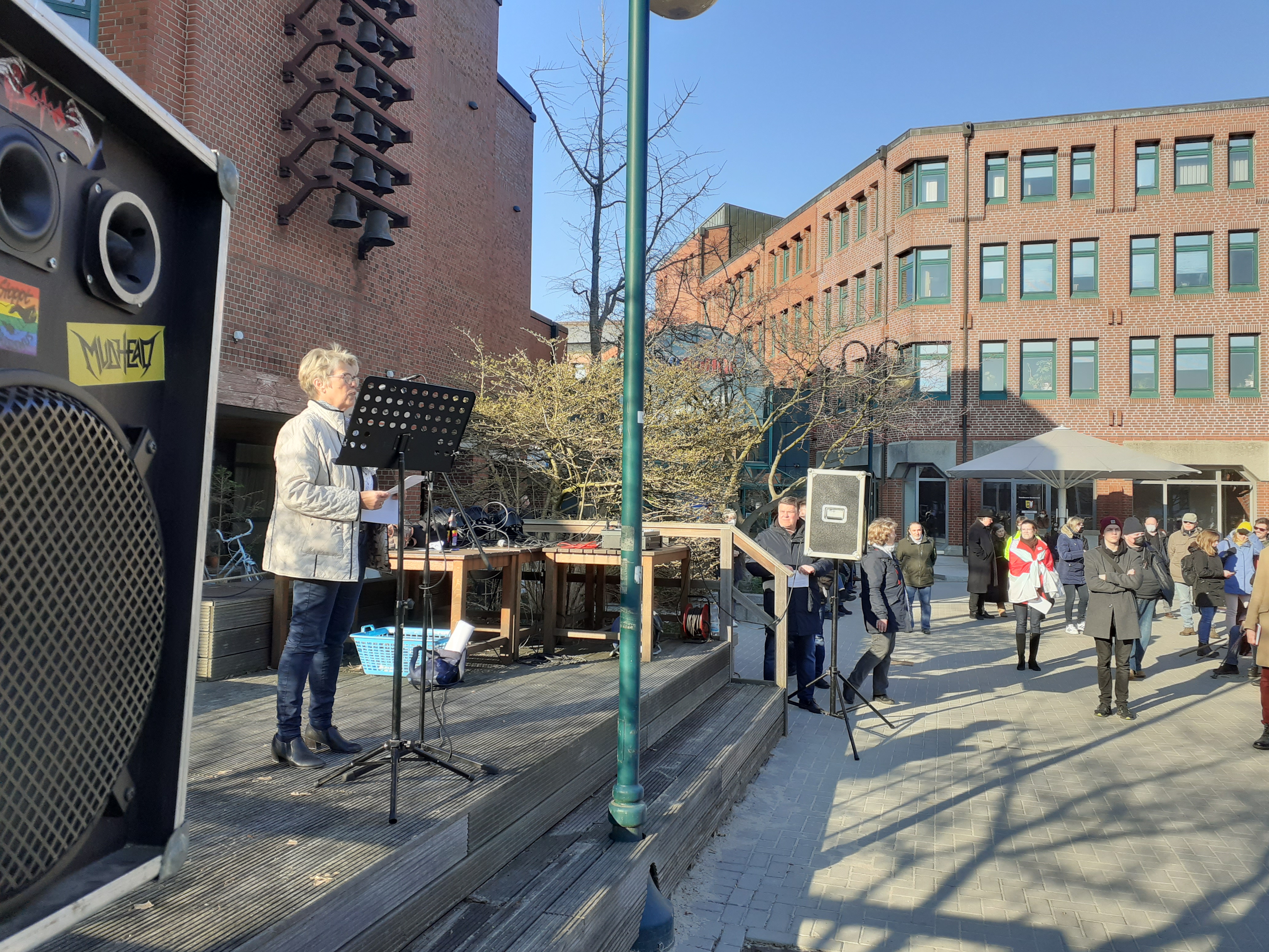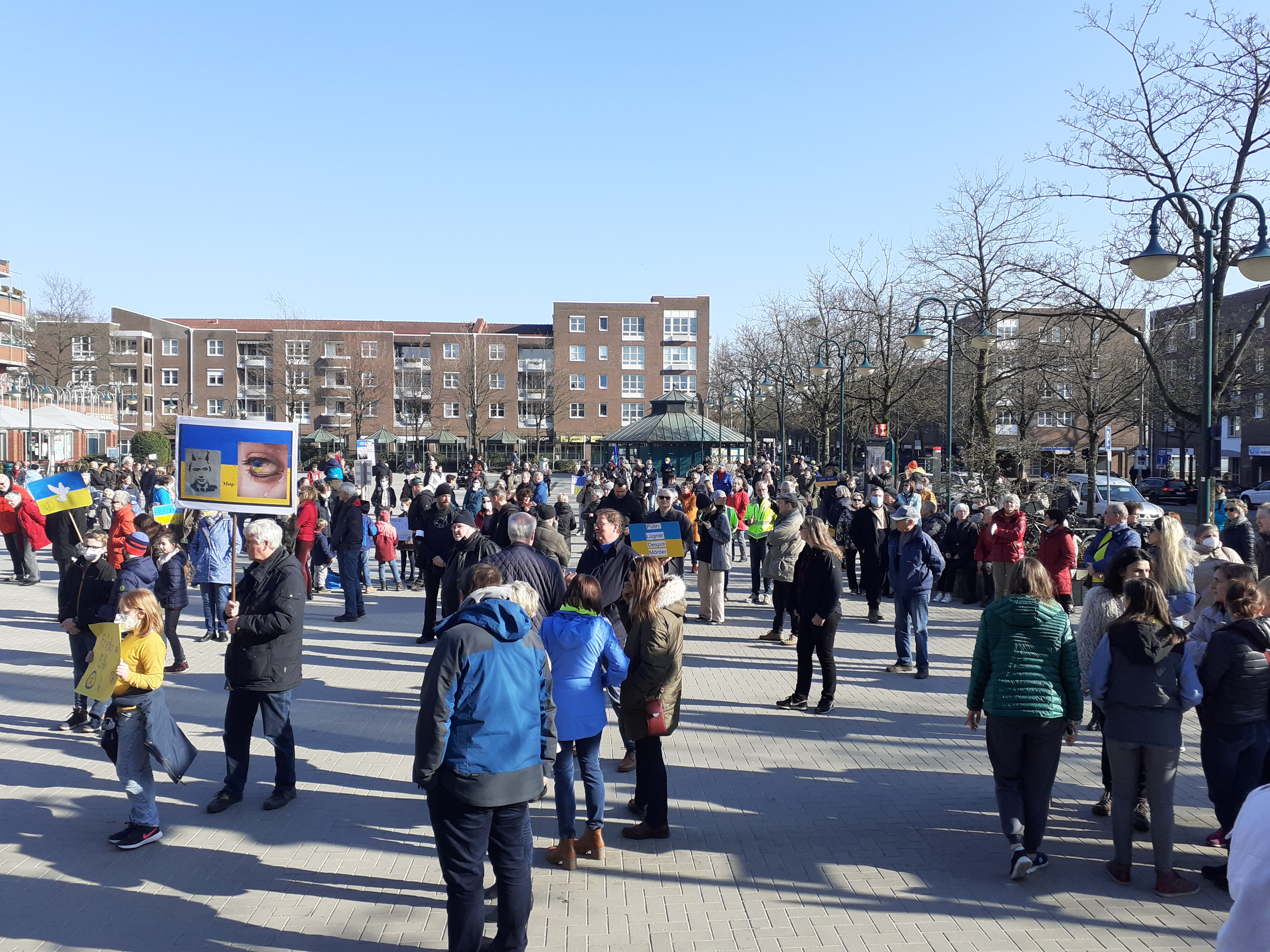 Am Samstag, den 12.03.2022 folgten mehrere hundert Menschen in Norderstedt dem Aufruf des Bündnisses „Norderstedt ist weltoffen“ zu einer Friedenskundgebung auf dem Rathausplatz. Diese sollte ein Zeichen der Solidarität setzen mit den von Krieg und Vertreibung betroffenen Menschen in der Ukraine und der Forderung nach einem sofortigen Stopp der Kampfhandlungen Gehör verschaffen.