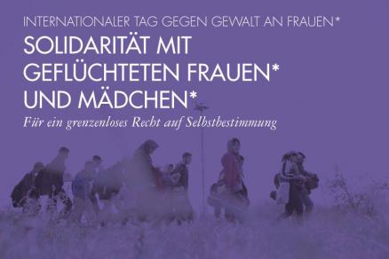 Mit der Hoffnung auf ein besseres und sicheres Leben in Würde überwinden Menschen Grenzen und stellen die „Festung Europa“ in Frage. Die Gründe das Herkunftsland zu verlassen sind vielfältig, zugleich haben sie auch eine geschlechterspezifische Komponente. Zusätzlich zur Bedrohung des eigenen Lebens in Kriegen sind Frauen* und Mädchen* sexualisierter Gewalt als systematischer Strategie der Kriegsführung ausgesetzt. Da es keine sicheren Routen nach Europa gibt, befinden sich flüchtende Menschen im rechtsfreien Raum. Frauen* und Mädchen* sind erneut Gefahren sexualisierter Übergriffe und Gewalt ausgesetzt, ohne eine Möglichkeit zu haben, diese anzuzeigen. Die massive Verschärfung des Asylrechts, das unter anderen den Familiennachzug unterbinden soll, führt dazu, dass noch mehr Frauen* und Mädchen* die gefährliche Reise auf dem Landweg oder über das Mittelmeer aufnehmen müssen. Jeder Frau* und jedem Mädchen* die/das die Entscheidung trifft zu flüchten: gilt unsere grenzenlose Solidarität.