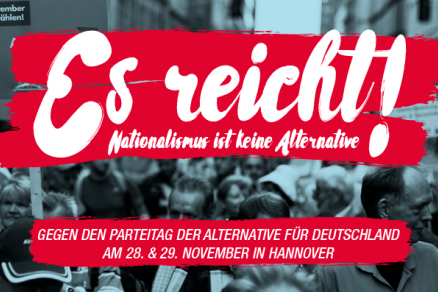 Und uns reicht es schon lange! Es reicht, dass wir schon wieder gegen Rassismus auf die Straße gehen müssen. Vor ungefähr einem Jahr haben wir gegen die Möchtegernhooligans von HoGeSa demonstriert und ihnen gezeigt, dass wir keinen Bock auf ihre stumpfe rassistische Hetze haben. Wir haben ihnen den Raum genommen. Jetzt kommt die AfD mit ihrem Parteitag ins HCC, die ist genauso rassistisch, nur tragen einige von denen teurere Anzüge als die Prolls von HoGeSa.