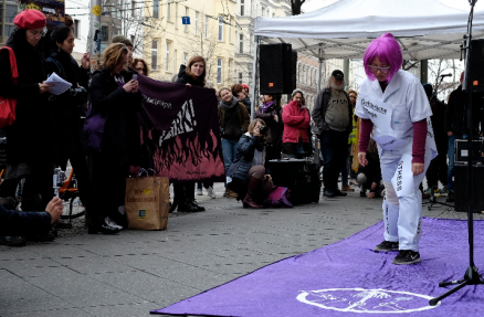 Auf einer queerfeministischen Mitmachkundgebung am 9.