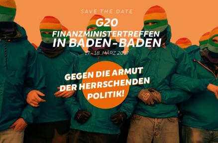 Zwischen Schwarzwald Idylle und Casino Atmosphäre treffen sich am 17.& 18.März 2017 die Finanzminister_innen der G20-Staaten in Baden-Baden. Im Glashaus sitzend stimmen sie sich ein, um den kriselnden Kapitalismus auf Kosten von Großteilen der Weltbevölkerung abzusichern.