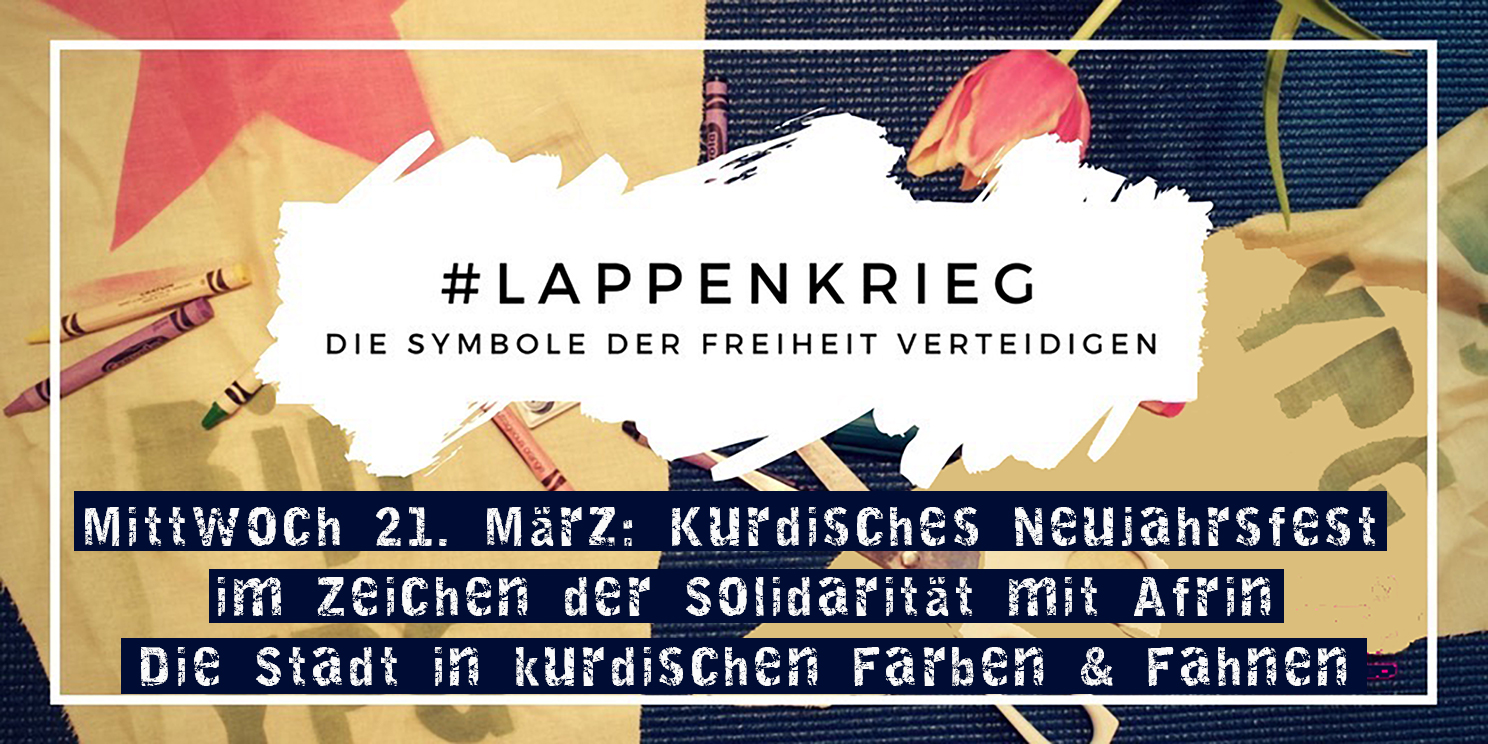 Mittwoch 21. März: Kurdisches Neujahrsfest im Zeichen der Solidarität mit Afrin - Stadt und Land in kurdischen Farben & Fahnen: #Lappenkrieg (1)
