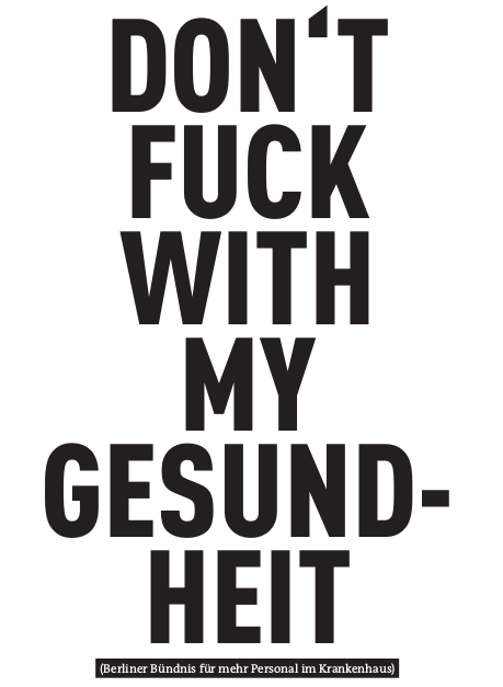 Wir unterstützen diese Auseinandersetzung und wir unterstützen den Streik. Natürlich wollen wir mehr. Wir wollen ein Gesundheitssytem, das nicht nach den Regeln des Markts funktioniert, sondern sich an den Bedürfnissen derjenigen orientiert, die hier leben und die darin arbeiten: Aufwertung von Sorgearbeit, Zugang zu medizinischer und pflegerischer Versorgung für alle, unabhängig davon, ob Menschen einen Pass haben oder keinen, egal welchen Pass sie haben, egal welchen Namen sie tragen; Sprechstunden, in denen sich Zeit genommen wird; Pflegekräfte, die nicht gestresst sind; notwendige Medikamente, die umsonst sind; Therapien, die wirklich helfen und nicht nur fit für den nächsten Tag machen; Ein-Bett-Zimmer im Krankenhaus, wenn es gewünscht wird; Visite von der Chefärztin, wenn es nötig ist; Operationen, wenn sie sinnvoll sind...