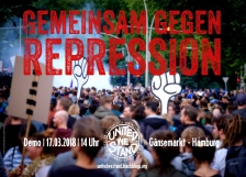 Kommt nach Hamburg zur Antirepressionsdemo am 17.03.2018 um 14.00 Uhr, Gänsemarkt.